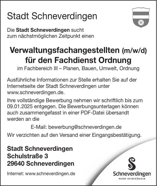 Verwaltungsfachangestellten (m/w/d) für den Fachdienst Ordnung
