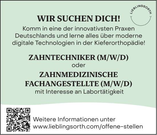 ZAHNTECHNIKER (M/W/D) oder ZAHNMEDIZINISCHE FACHANGESTELLTE (M/W/D)