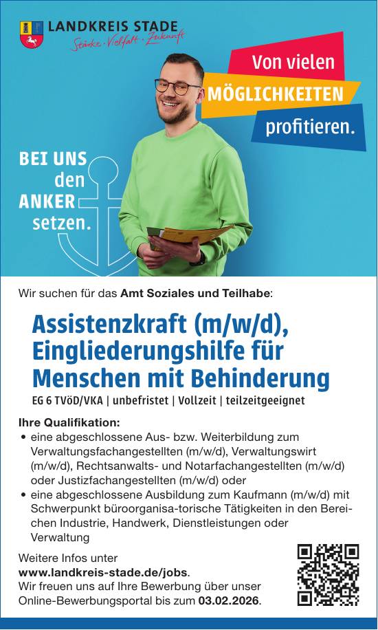 Assistenzkraft (m/w/d), Eingliederungshilfe für Menschen mit Behinderung