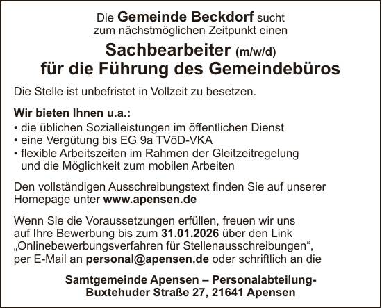 Sachbearbeiter (m/w/d) für die Führung des Gemeindebüros