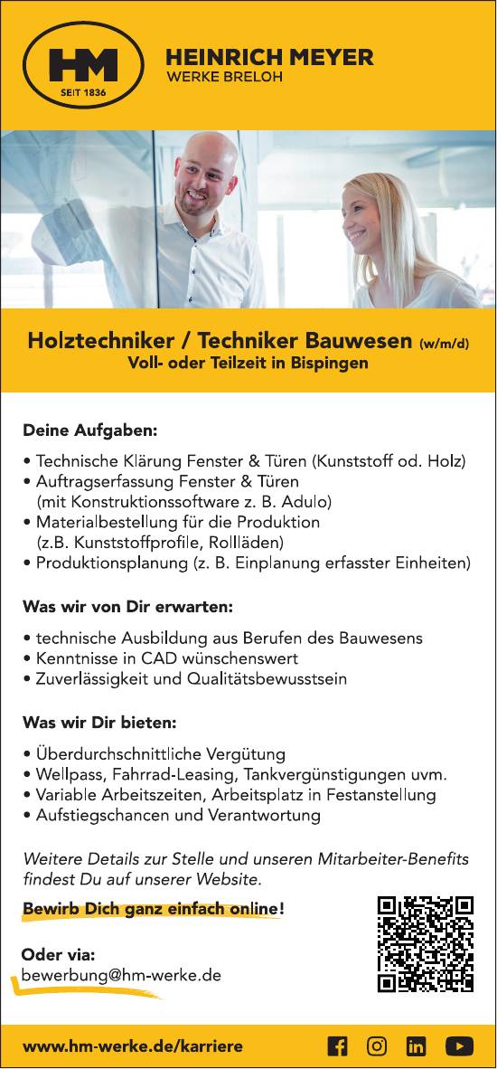 Holztechniker / Techniker Bauwesen (w/m/d)