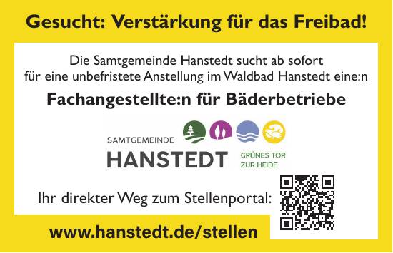 Die Samtgemeinde Hanstedt sucht ab sofort für eine unbefristete Anstellung im Waldbad Hanstedt eine/n