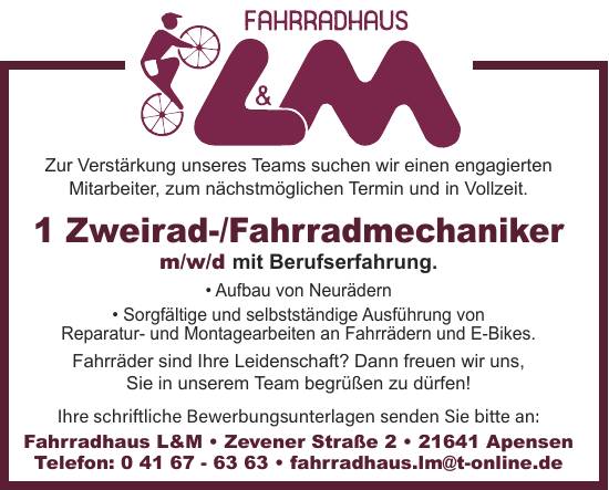 1 Zweirad- / Fahrradmechaniker (m/w/d) mit Berufserfahrung