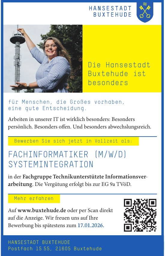 Auf www.buxtehude.de oder per Scan direkt auf die Anzeige.