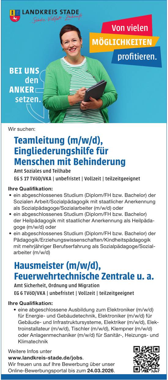 Weitere Infos unter www.landkreis-stade.de/jobs