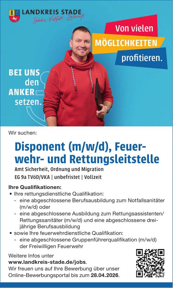 Weitere Infos unter: www.landkreis-stade.de/jobs