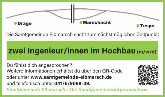 Weitere Informationen erhältst du über den QR-Code oder unter www.samtgemeinde-elbmarsch.de und telefonisch unter 04176/9099-39.