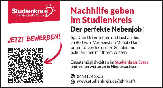 Einsatzmöglichkeiten im Studienkreis Stade und vielen weiteren Standorten in Niedersachsen.