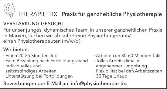 Bewerbungen per E-Mail an: info@physiotherapie-tix.de